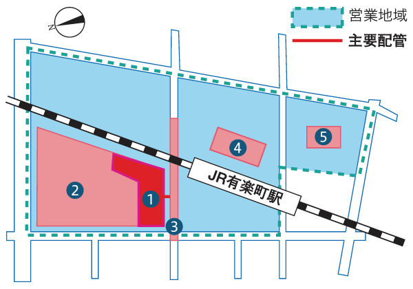 旧都庁舎跡地の西側に国際的な文化交流の場として「東京国際フォーラム」が建設されました。この周辺は様々な分野で活発な都市活動が展開されています。快適な都市づくりの一翼を担い大気汚染の改善と省エネルギーの有効方策として熱供給事業を行っています。